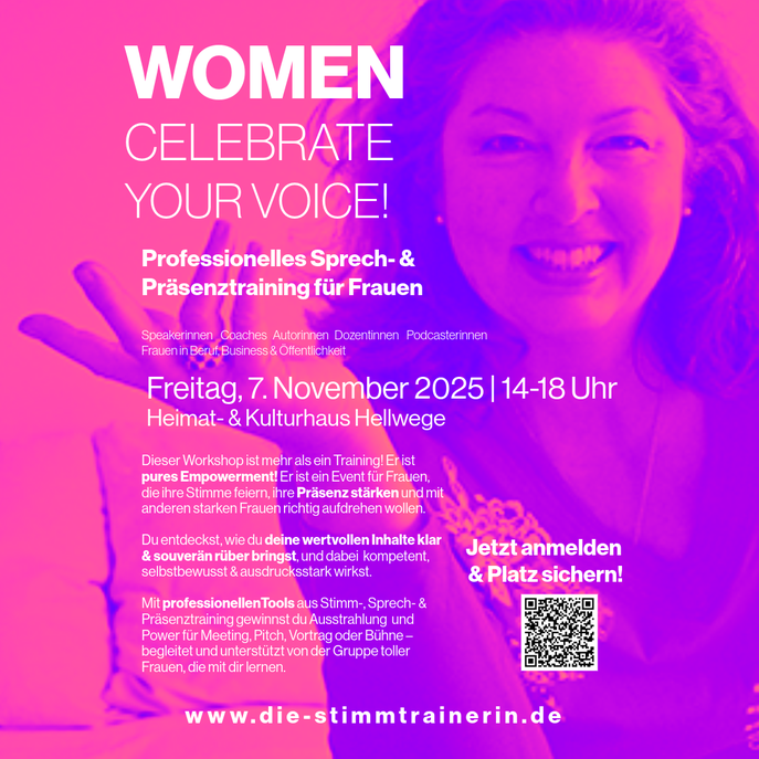 Für wen: Frauen in Beruf, Business oder Öffentlichkeit, die ihre Stimme für mehr Souveränität und Präsenz entwickeln möchten.